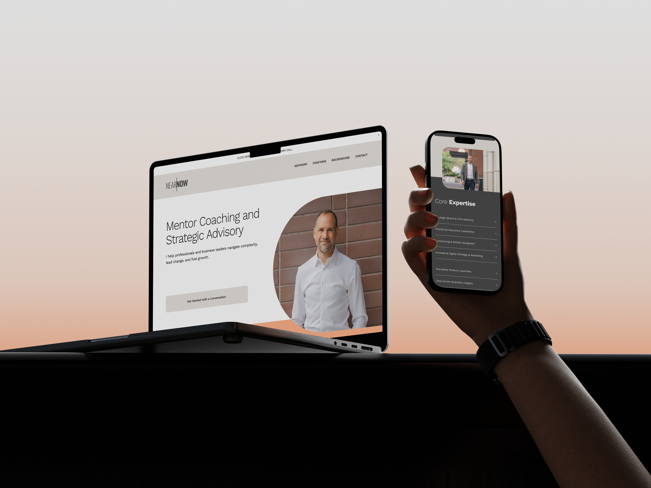 Near Now Coaching is a coaching business working with a marketing partner to establish a clear online presence. The marketer needed a reliable execution partner to quickly build a simple, polished website that aligned with an existing brand identity.
